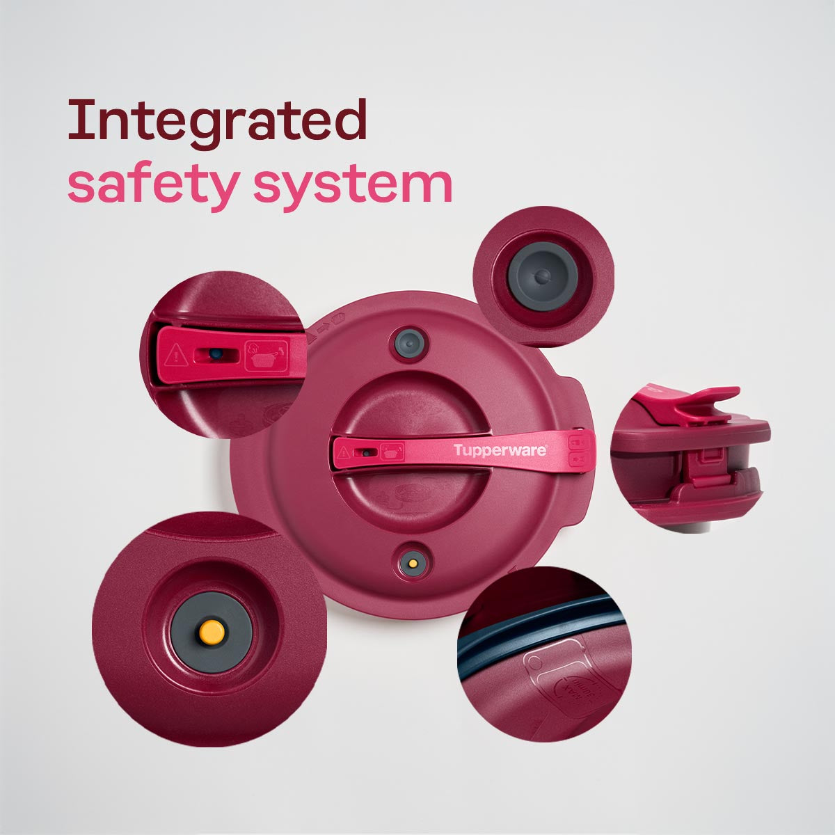 Integrated safety system:?With five built-in safety features??including a pressure release system. locking system. and regulation valve??this pressure cooker puts safety first.