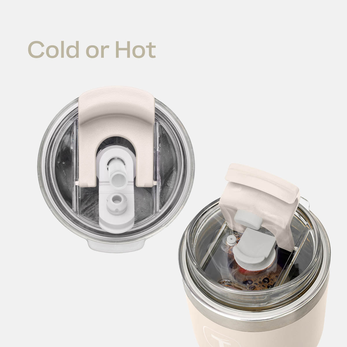 - Straw in or spout open:?For cold drinks. pop the straw in the 2-in-1 lid. For hot beverages. flip the lid to sip from the spout.